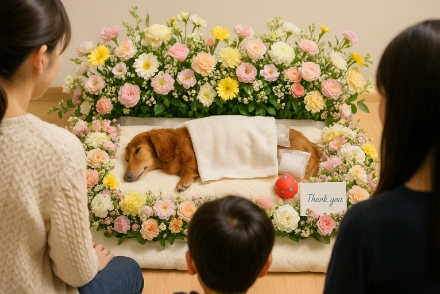 ペットがよく寝ていた場所や、リラックスしていた場所に寝かせると、自然な雰囲気でお別れができます。