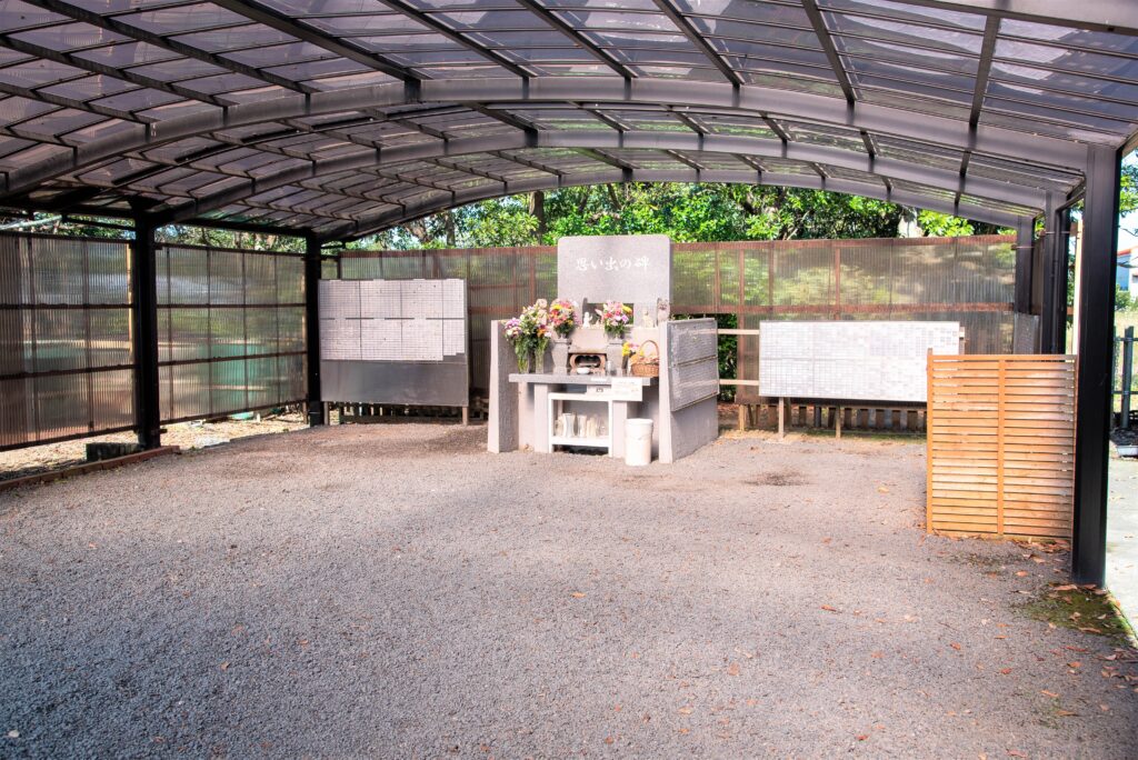 雨天でも蒸れずにお参りができる供養塔