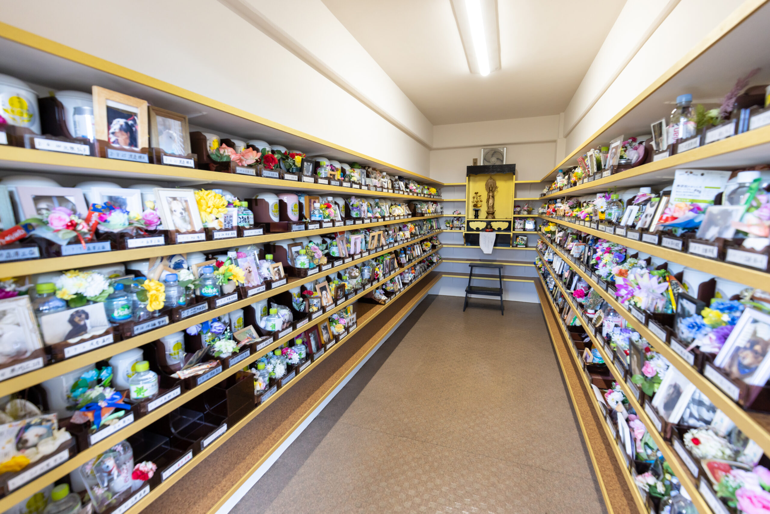 慈恵院の新本堂は、伝統美と現代的な機能を融合させ、耐震・バリアフリーにも対応した安心の施設として完成しました。地下には、飼主とペットが共に眠れる「慈愛霊廟」(300基)が新設され、複数納骨にも対応可能です。
