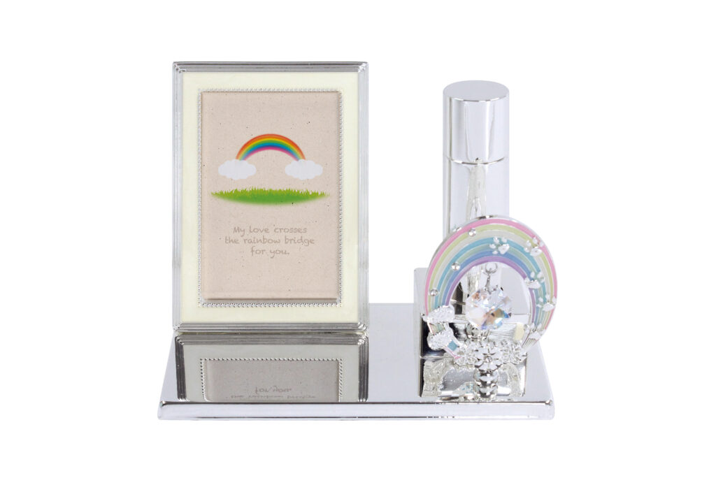 小さなお写真入れがついたオーナメントフレーム。ご遺骨がお手元にないという方も、大切なあの子の歯、爪、遺毛、おひげ、お洋服の切れはし、土など、お手持ちの形見を納めることができます。天国のあの子の新しいおうちとして、優しくご供養ください。