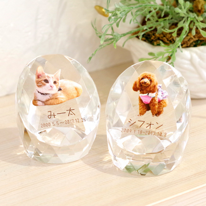 きらきら輝くカットが綺麗なクリスタルの位牌です。お写真とお名前、没年月日もお入れできます。