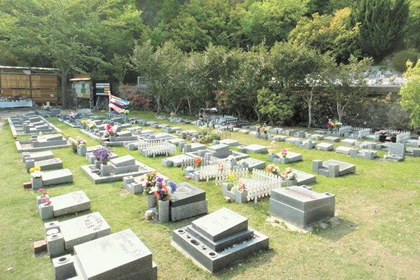 エンジェルサウスガーデンは芝生に囲まれたペット専用墓苑。横浜外国人墓地をイメージし、区画によっては瀬戸内海を望める安らぎの地です。