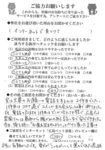 ペットとの思い出を聞いて下さったり色んな経験談をして下さったりアットホームな対応で とても親切で大満足しております。