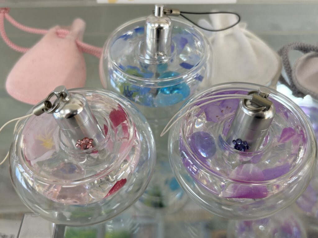 にくきゅうのラインストーンが付いたカプセルとお花のデザインが可愛いホルダーです。